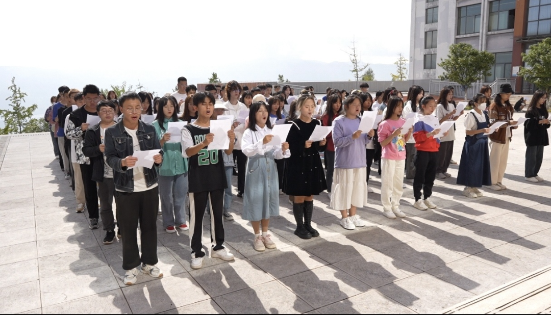 学生代表庄严肃穆奏唱国歌