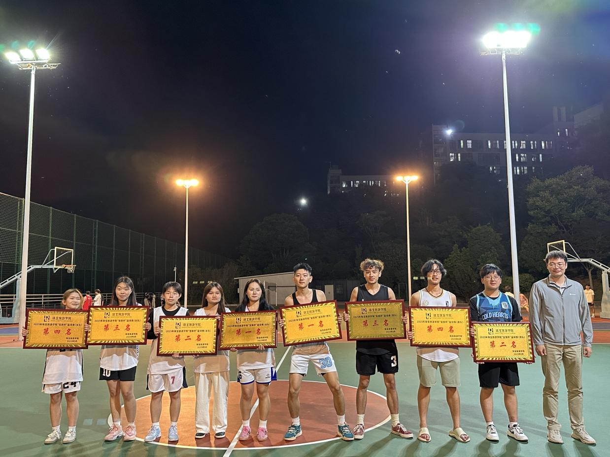 经过紧张而激烈的对抗,比赛结果最终揭晓。在激动人心的颁奖环节,学生会主席团为男女组前四名的队伍颁发了荣誉牌匾,对他们在比赛中展现出的拼搏精神和高超球技给予了充分肯定。同时,也为表现出色的裁判们颁发了荣誉证书,感谢他们在比赛中公正执裁,保障赛事顺利进行。获奖队伍与裁判们共同合影留念,为本次“宝旅杯”篮球赛画上了圆满的句号。