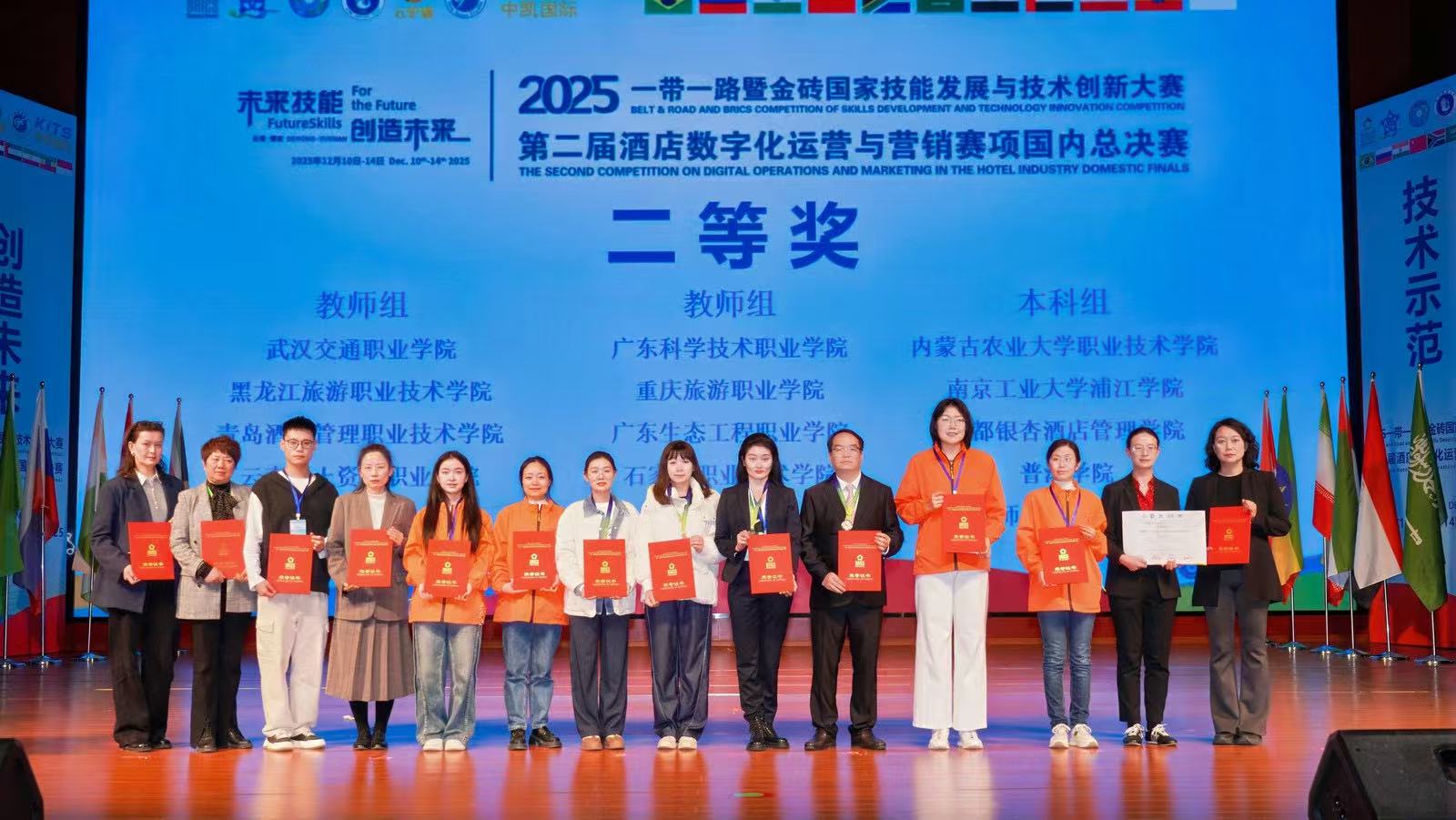 2025年12月13日下午,由金砖国家工商理事会、一带一路暨金砖国家技能发展国际联盟主办的2025一带一路金砖国家技能发展与技术创新大赛第二届酒店数字化运营与营销赛项全国总决赛在云南德宏职业学院圆满落幕。本次大赛以“数字化驱动、产教融合、技能强国”为主题,汇聚了来自全国各地125支参赛队伍、近500名师生同台竞技,涵盖教师组、本科组、高职组、中职组四个组别,是一场高规格、高水平的职业技能盛会。