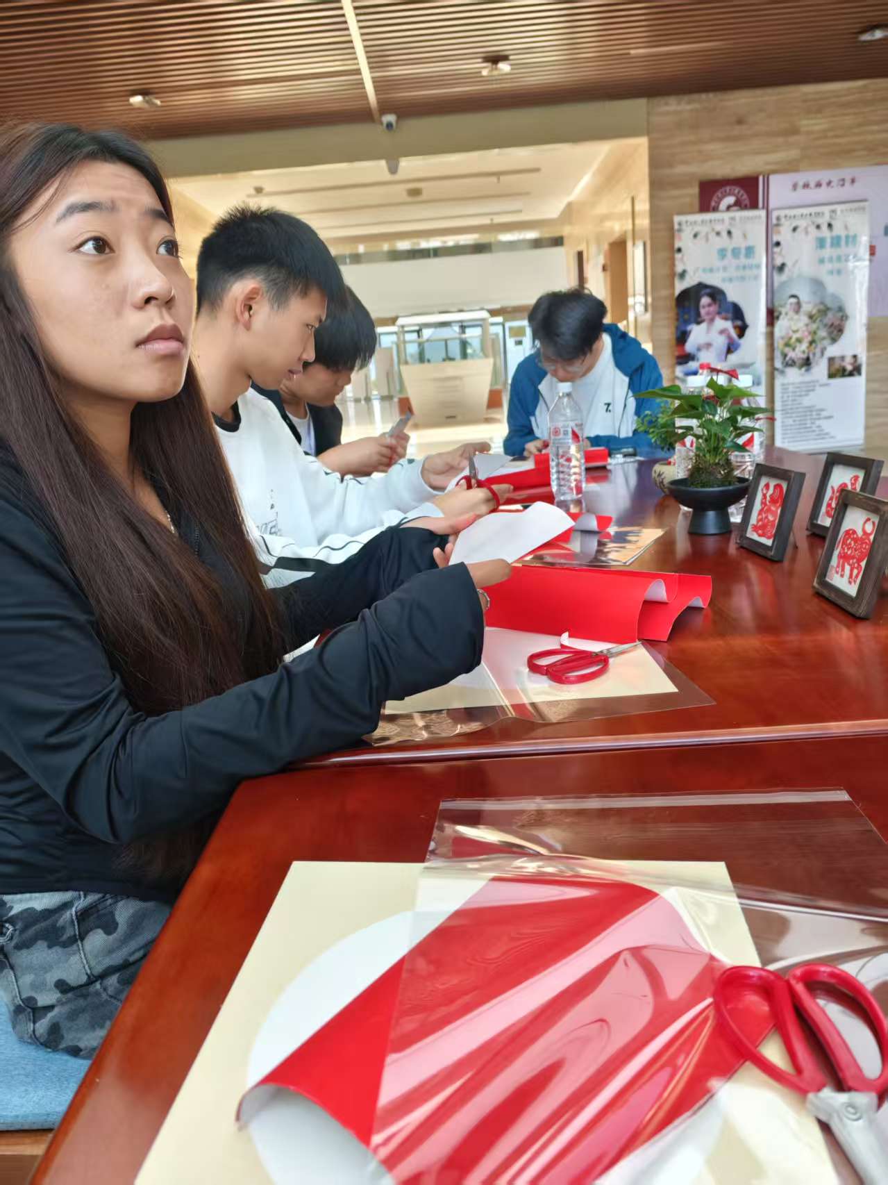 昆明市级非遗传承人、云南省著名剪纸艺术家段云丽老师首先向师生们介绍了剪纸艺术的历史渊源、文化内涵和艺术价值,并展示了她精美的剪纸作品,让大家对这项古老的传统技艺有了初步的了解。随后,她现场演示了阴阳双刻技法,只见她手中的剪刀上下翻飞,纸屑纷飞间,一幅栩栩如生的花朵图案便跃然纸上,精湛的技艺令现场师生们惊叹不已。在段老师的悉心指导下,师生们也拿起剪刀,亲身体验剪纸的乐趣。段老师耐心地走到每一位师生身边,手把手地指导他们如何握剪、如何运刀、如何构图,现场气氛热烈而温馨。