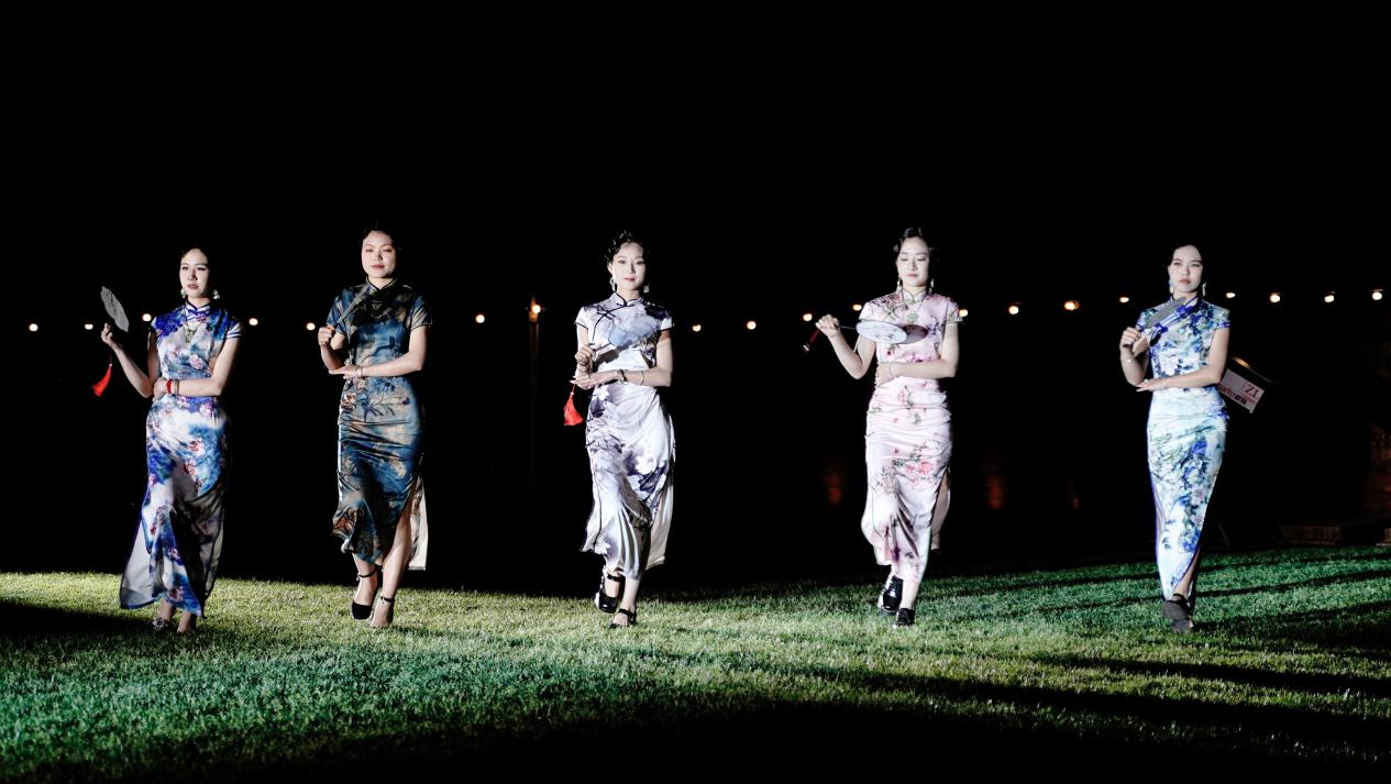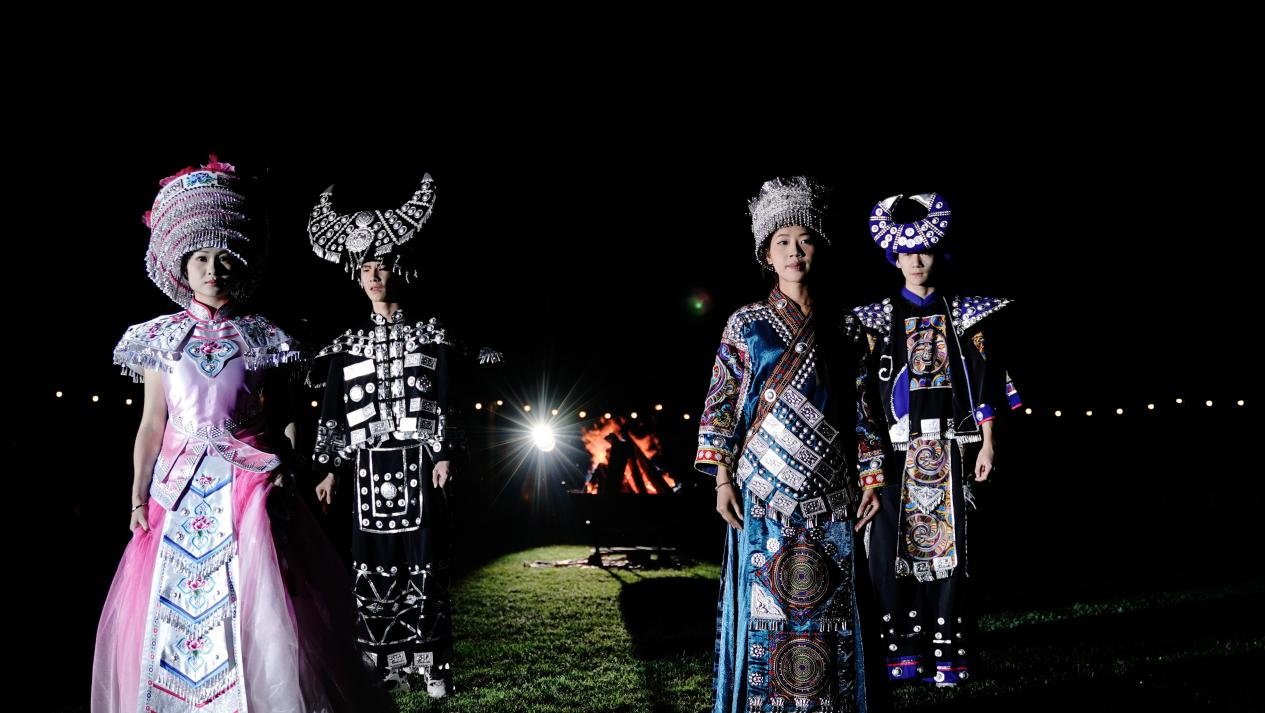 在Nordisk Village营地草地上,模特队的同学们身着彝族、白族等25个云南少数民族的特色服饰,以自然草地为T台,配合灯光和音乐呈现了一场融合民族风与现代感的夜间时装走秀。台步设计灵动多变,融入舞蹈元素,尽显民族服装首饰魅力与文化内涵。