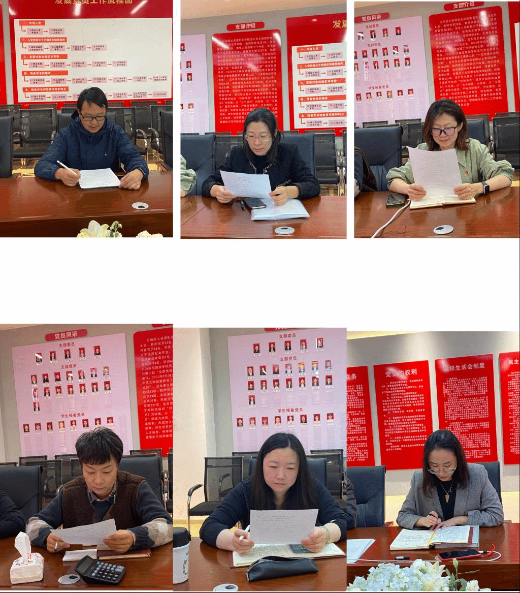 随后,其他党员依次分享自己的学习心得。教师党员纷纷表示二十大是一次高远务实、砥砺奋进的大会,作为新时代党员更要有新担当、新作为。他们将自己的学习心得与自己的教学任务、专业发展、学生管理等结合起来,表示二十大精神使其更加明确了今后的奋斗目标和前进方向,在今后的工作生活中,学以致用,切实把思想和行动统一到大会精神上来,以实际行动落实二十大精神,进一步推动各项工作规范化、高效化运转,以更加昂扬的斗志,充沛的干劲、扎实的作风,履职尽责,牢记党的宗旨,为师生排忧解难,耐心、细致,用心用情服务好广大师生。