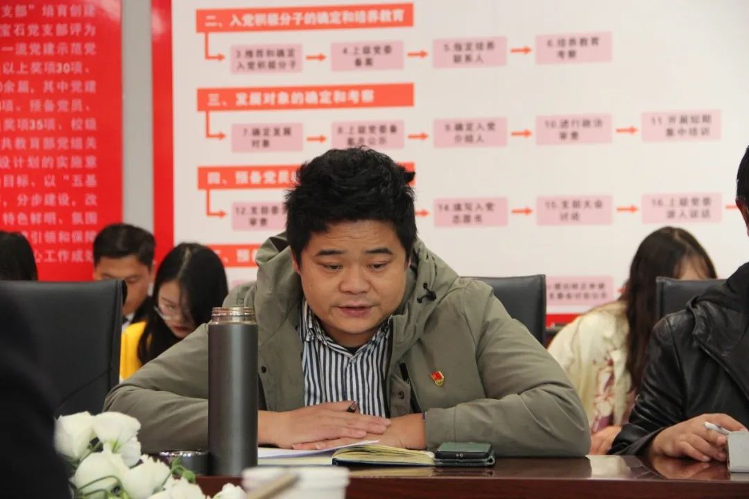 紧接着宝石党支部副书记赵忠相以脱贫攻坚为主谈到十年以来,扶贫教育工作让各族人民的生活水平都得到较高的发展,我们要深入贯彻以人民为中心的发展思想,在推进幼有所育、学有所教、劳有所得、病有所医、老有所养、住有所居、弱有所扶的扶贫上用力,建成世界上规模最大的社会保障体系,让人民群众及学生获得更多幸福感。