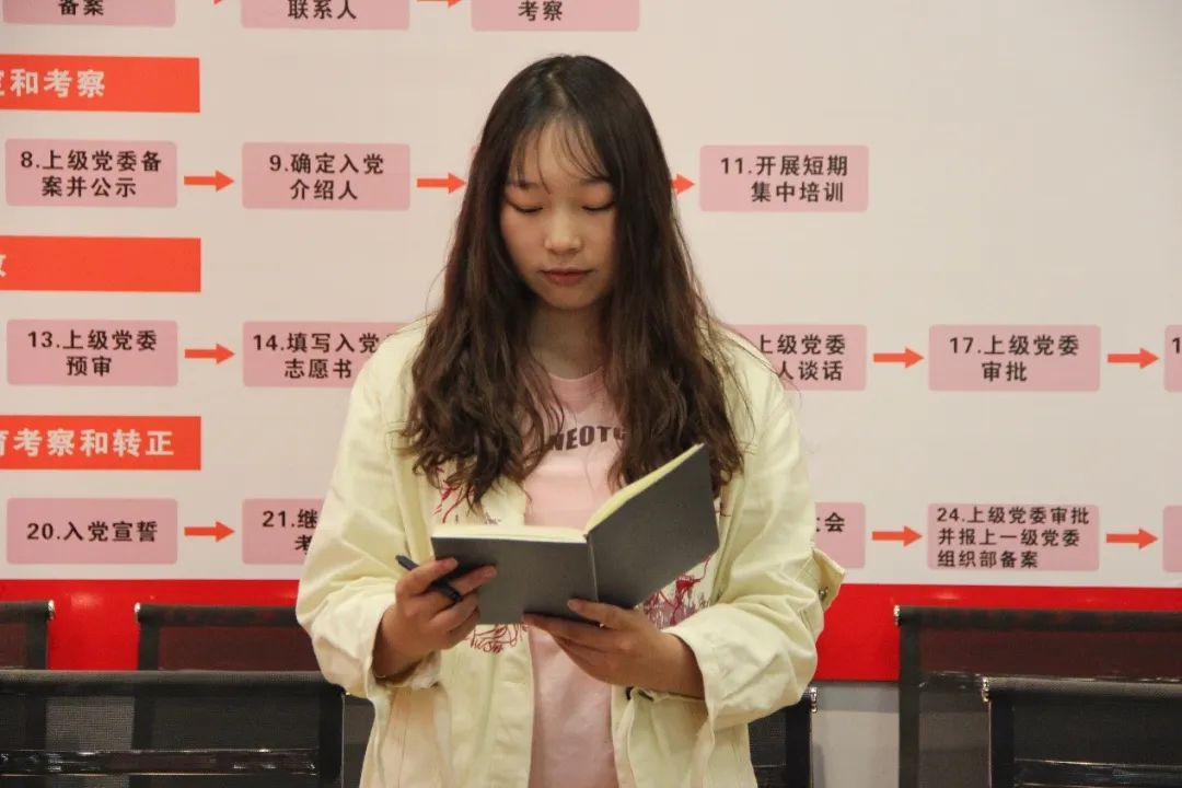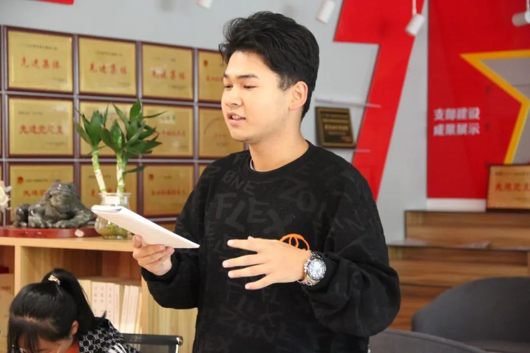 学生代表么晨彬、杨睿、陈梵说到作为新时代的接班人、新青年,同时作为一名光荣的入党积极分子我们要肩负起历史使命,抱有远大理想、努力提高自身素养、调整好自己的心态、摆正好自己的位置、要有能吃苦耐劳的精神、有责任感,并且树立终身学习的观念,通过不断的学习来适应社会,坚定战略自信,保持战略清醒,增强信心斗志,以实际行动贯彻学习党的二十大精神。
