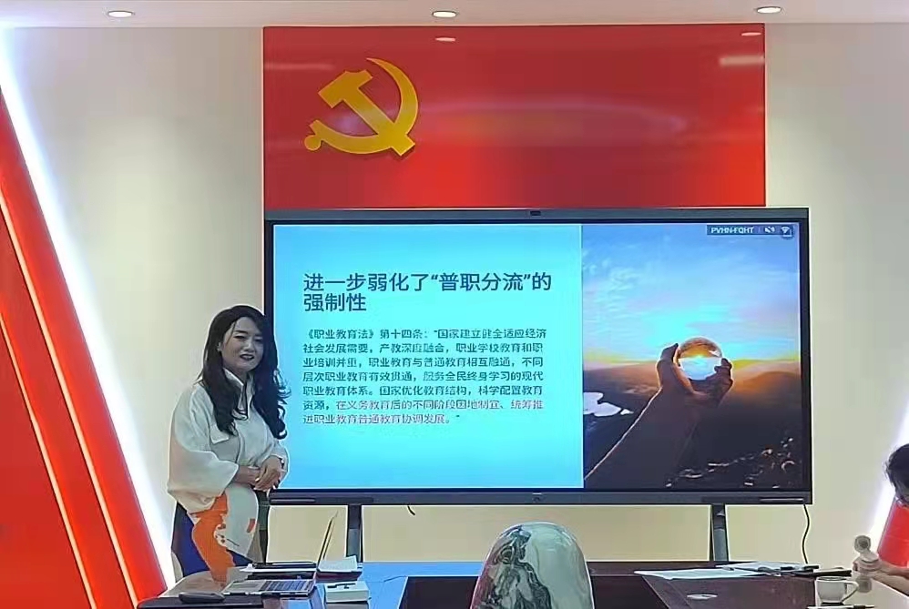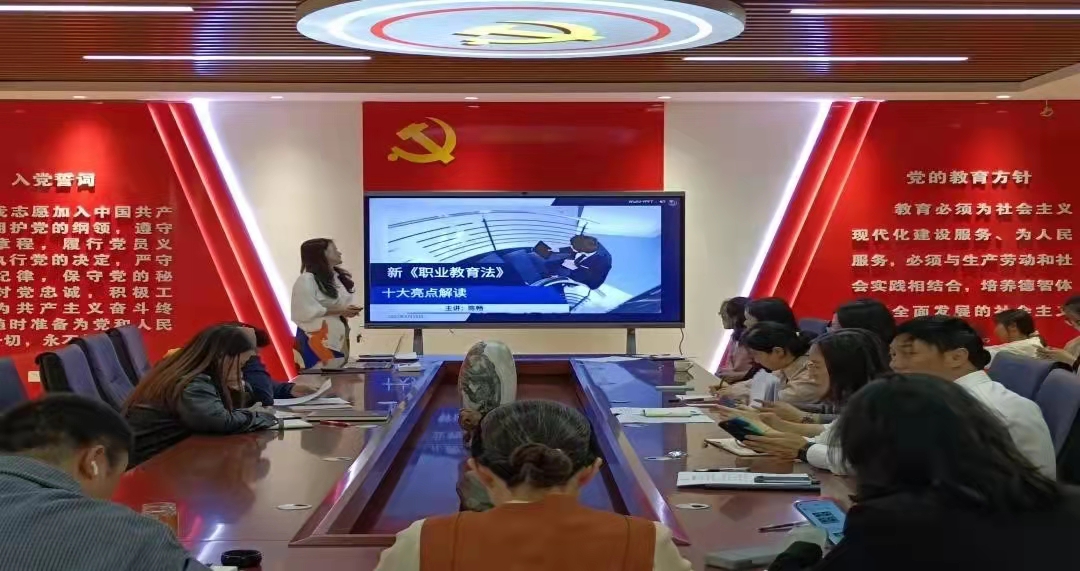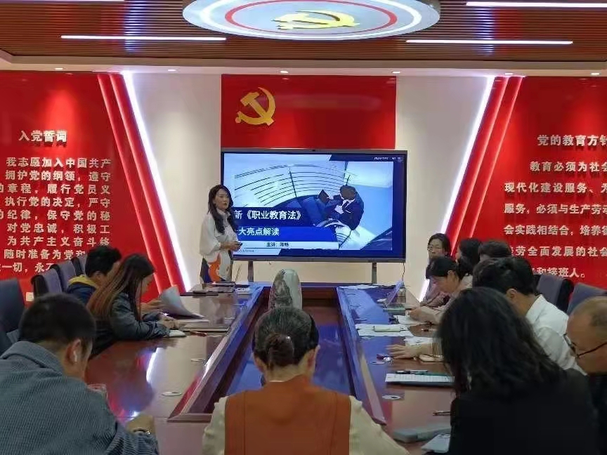 5月25日12:40分,在线买世界杯平台党总支组织开展五月主题党日活动暨院长陈畅同志讲专题党课——《<新职业教育法>十大亮点解读》,学院全体党员和全体教职工参加了学习。