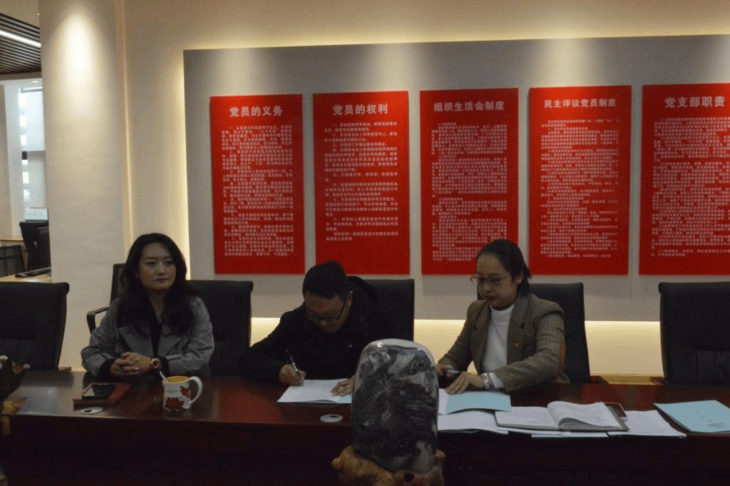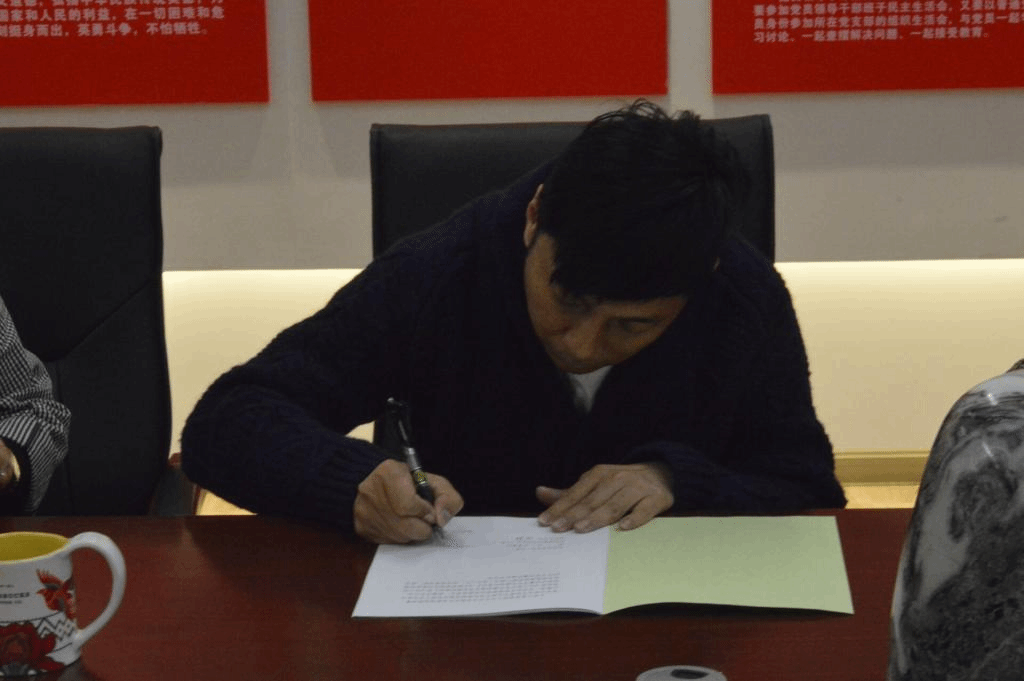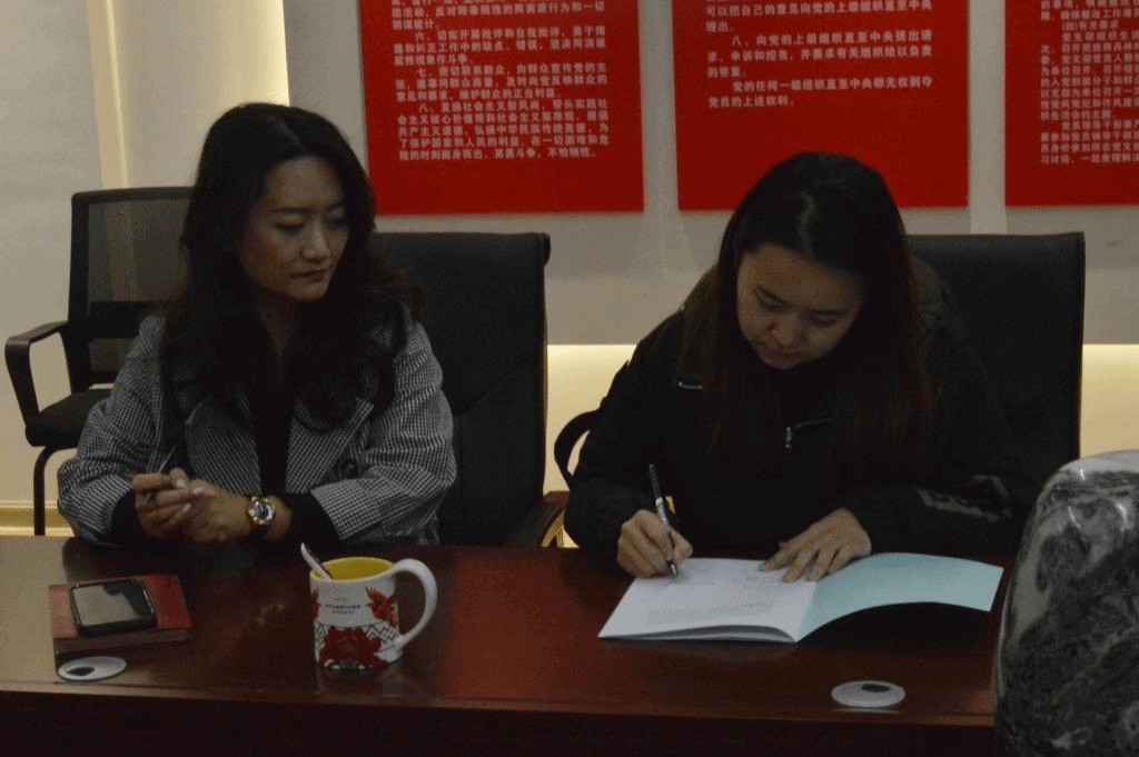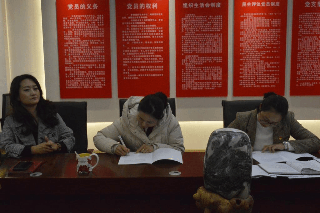 为巩固和落实目标实施张颖书记与陈畅院长分别与综合办、团总支书记、三个教研室主任、两个支部书记签订目标责任书及全体教职工的党风廉政承诺书签署。