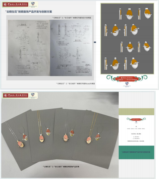 在云南省 ,一个独特的项目正静静绽放光芒——“云铜生花”之彩云追 月产品,这不仅是一个珠宝产品的创新实践,更是一个校企合作典型生产实 践项目的生动案例。通过深度融合非物质文化遗产技艺与珠宝产业,该项目 旨在培养具有高素质技术技能和良好职业道德的新时代珠宝行业人才,为非遗技艺传承与珠宝产业发展开辟了新路径。
