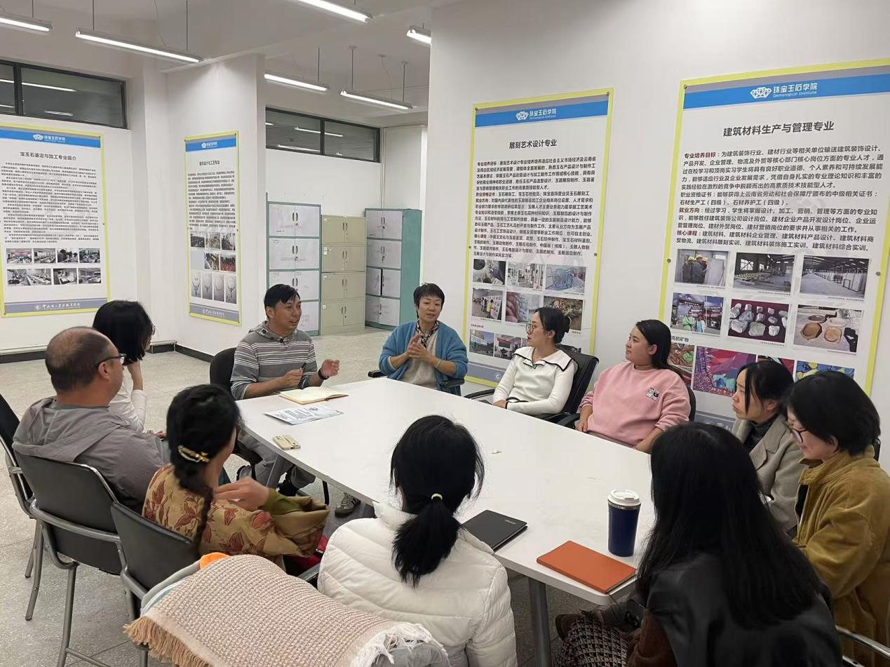 研讨中,宝石党支部书记赵忠相针对宝玉石鉴定与加工专业和雕刻艺术与工艺(玉雕)专业的珠宝贸易考察实训中的课程思政经验进行了分享。表示我支部党员教师在实训过程中利用腾冲国殇墓园开展爱国主义教育,腾冲翡翠博物馆融入吃苦耐劳、勤劳致富等课程思政元素,在整个实训教学过程中取得了较好的教学效果。